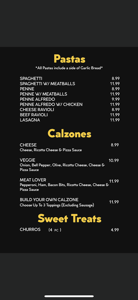 Pastas, Calzones, Sweets