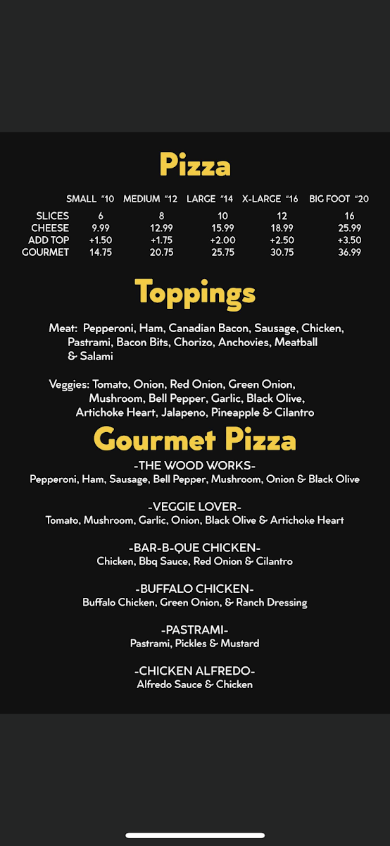 Redwood Pizza and Wings Menu